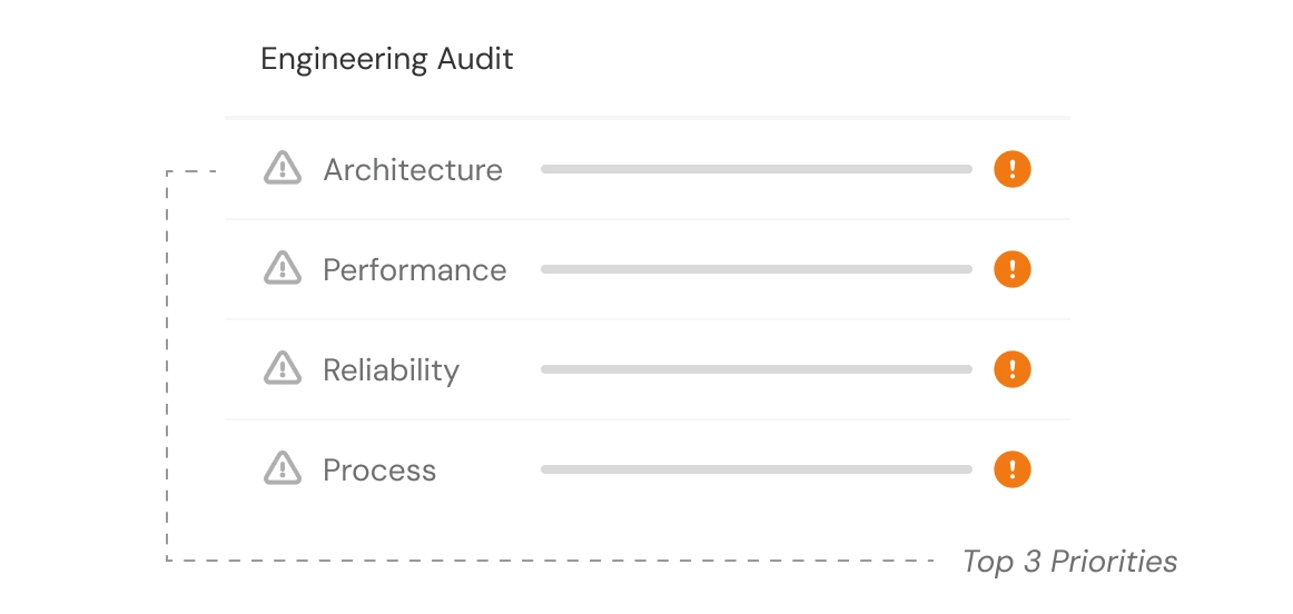 Whether you need confidence before a fundraise, clarity after an acquisition, or simply want to understand your tech debt, our audit gives you a prioritized action plan you can act on immediately.